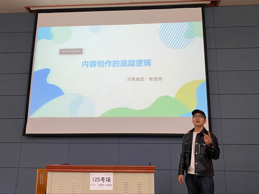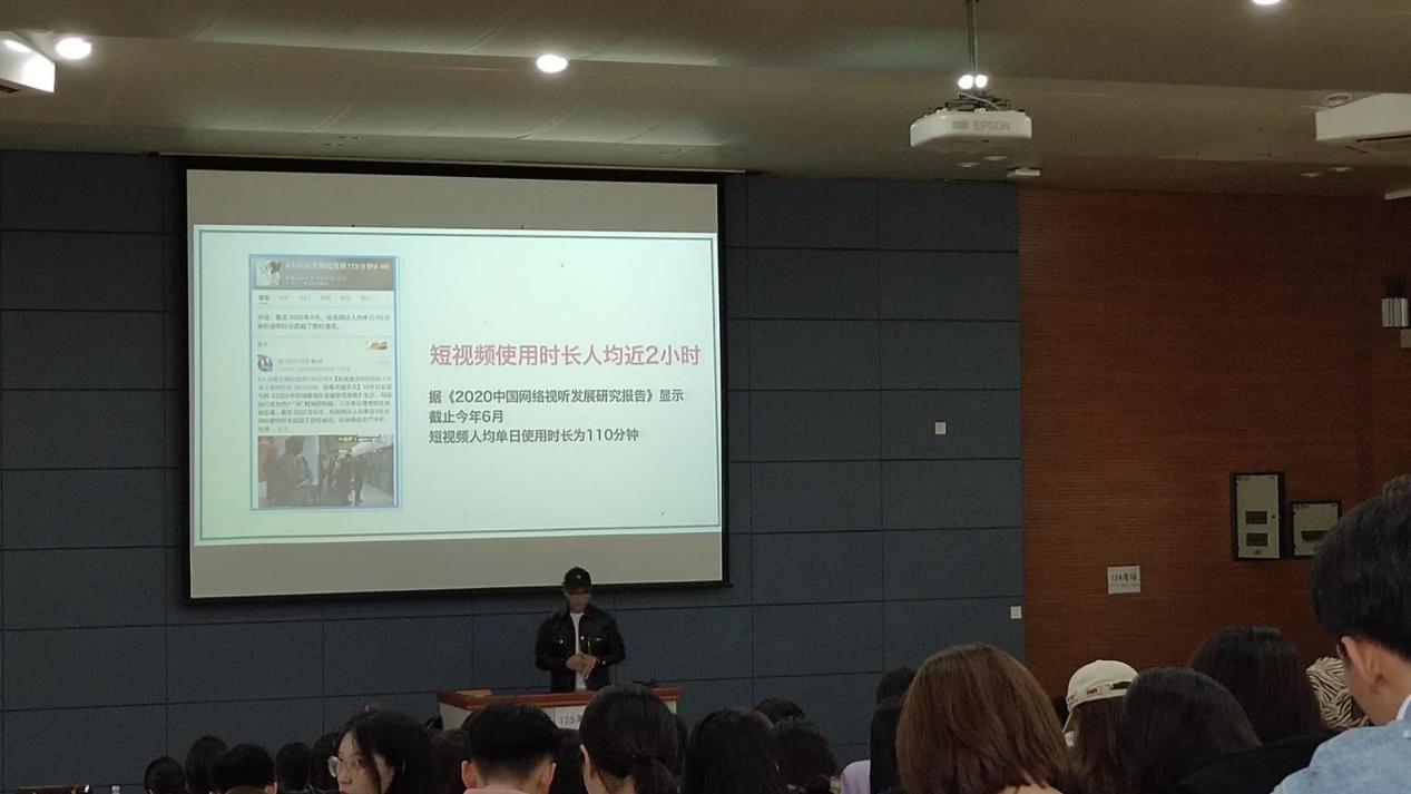 2020年11月2日下午两点半,一场主题为“短视频如何创作”的交流会在公司C报告厅开展,讲座由广播电视编导及播音与主持艺术两个专业联合举办,两个专业大一到大三的同学皆到场聆听。张俊涛作为国内知名的MCN机构洋葱视频的内容创作导师,以当今媒体融合、发展转型的趋势为切入点,呼吁同学们积极投入到自媒体内容创作中。