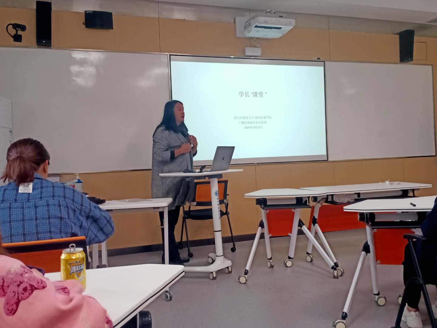 2020年11月4日下午两点30分,公司2013级广播电视编导专业员工薛秋富回到公司,为公司2020级hy3380cc海洋之神广播电视编导的同学们上了一场别开生面的学长“课堂”,该“课堂”由hy3380cc海洋之神邬建中老师主持。