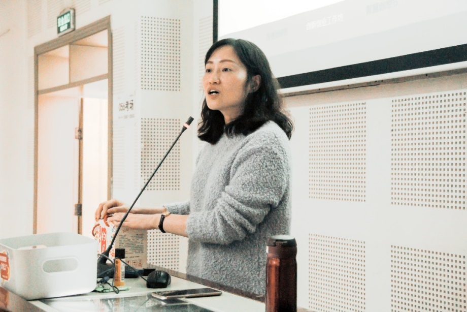 随后,黄蜜老师从调研、定项到策划讲解了创新创业项目孵化全流程,并强调调研的重要性。其他四位老师也为同学们做了一个简短的自我介绍,同时表达了自己对创新创业的理解,让同学们更充分地了解此次活动的意义。