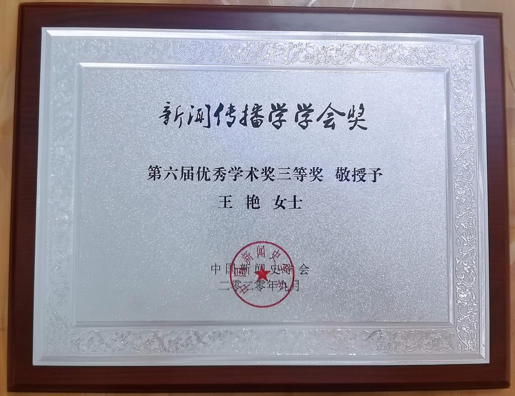 公司王艳老师荣获第六届“新闻传播学学会奖”优秀学术奖