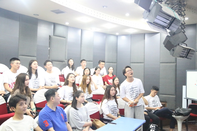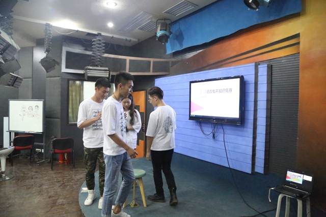 5月7日下午,2017级5班在大礼堂演播室展开《普通话语音与播音发声》小课会诊活动,播音主持艺术专业教师王媛、罗勇、张超、朱紫缘参加了活动。