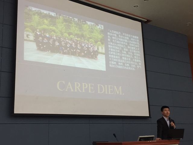 周志东员工本科毕业后进入华中科技大学新闻与信息传播学院深造,硕士毕业后就职于华为企业业务部,任济南代表处客户经理。他从“人生苦短”、“来日方长”、“自知之明”三方面给大家分享了自己的成长经历,并勉励师弟师妹们说,“在川外,每一声清晨的鸟鸣与每一束午后的阳光都不应被辜负”。周志东员工坦承自己“也曾考试低分、员工会竞选失败、评奖学金落选,但以上的小挫折都是最恰当的试炼。”他鼓励同学们选择适合自己的道路,认为“这是一切美好开始的前提”。