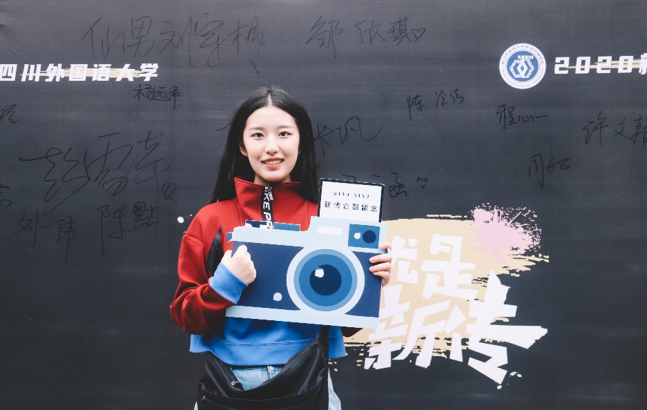 此外,今年延续往年的传统,设立了新生报到签名墙,提供了合影板,供新生拍照留念。签名墙前,不断有新生前往拍照留念。