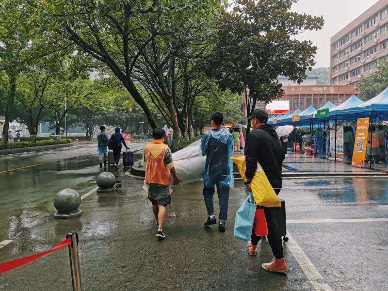 新生入学,考虑到疫情开学情况特殊,员工家长无法进校,学校特派志愿者帮助新生搬运行李。公司党总支书记倪颖军老师和组织员李正廷老师也随志愿者一道开车帮助同学搬行李。