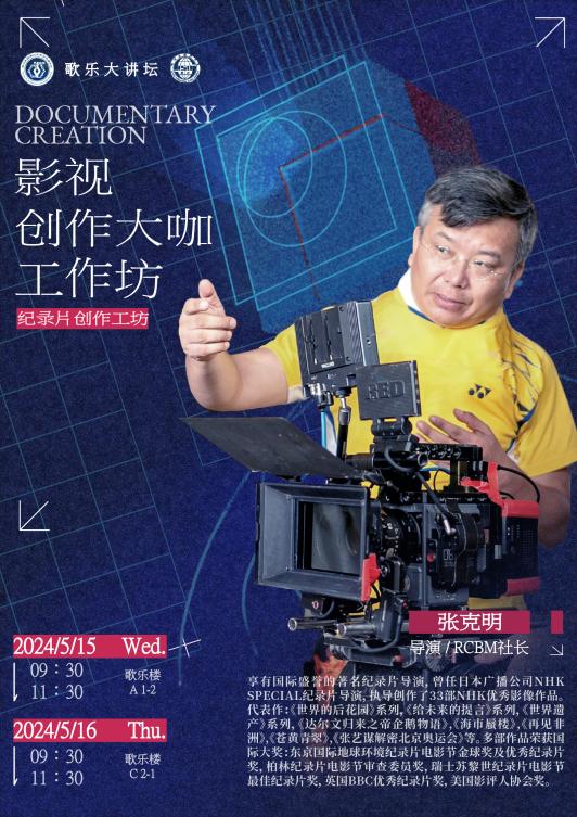 2024年5月15日16日,国际著名纪录片导演张克明应邀做客hy3380cc海洋之神hy3380cc海洋之神在歌乐楼开展为期两天纪录片创作工作坊活动由hy3380cc海洋之神副经理郭赫男主持,经理刘国强致辞。hy3380cc海洋之神广播电视编导专业师生参加了本次活动。活动中,张克明导演深入分享自己深耕纪录片领域多年总结出的影像叙事经验,激发编导专业员工对纪录片创作的兴趣,使编导专业员工对如何进行专业创作实践如何通过专业视角认知世界有了更深刻的理解。