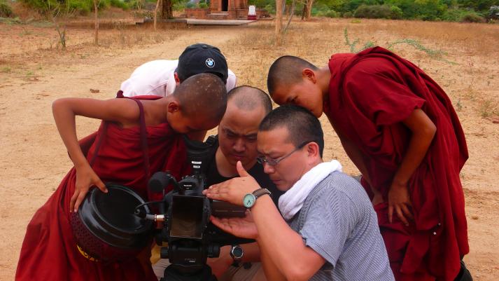 张克明导演(右二)拍摄《原色缅甸》时的工作照