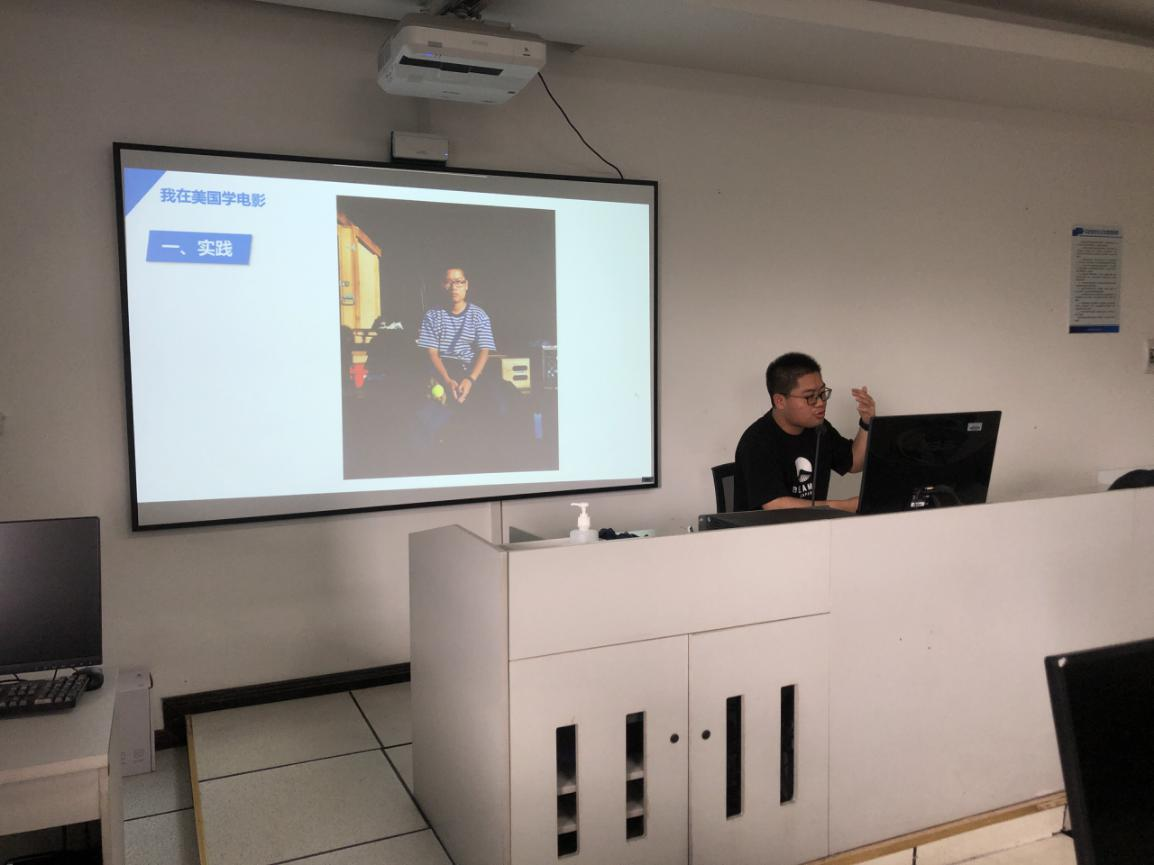 主讲人傅至,是本院14级的员工,在大学毕业之后成功申请到纽约电影学院影视制作系研究生,远赴大洋彼岸求学。傅至首先为同学们介绍了纽约电影学院的优越地理位置以及丰富的资源条件,分享了他在纽约电影学院拍片的实践经历,也为同学们播放了部分其在纽约电影学院创作的短片。