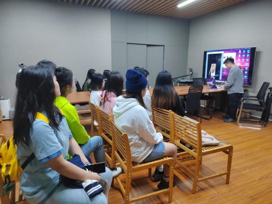 参观结束后,同学们前往会议室,马老师与设计总监王老师为大家举办了一场文创产品研发讨论会,向大家讲述了创意经验,分享了创作思路。