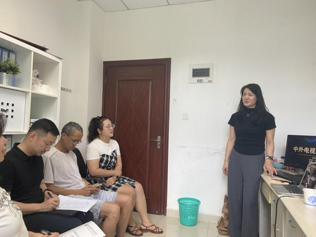刘玉芝老师展示了课程《中外电视比较》的授课流程,和备课资料准备情况。刘老师提出在针对中外内容的讲述中,要鼓励同学具备国际传播意识,积极进行相关的思考和讨论,并要求员工将有益的想法转化为文字,完成知识的巩固。