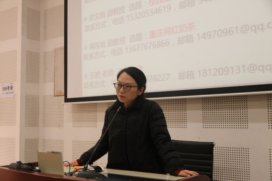 蒋东旭老师因公事未能抵达现场,由王艳老师代他传达关于“重庆网红奶茶”这一主题的总结评析。他指出,同学们具有比较出色的审美能力和文字撰写功底。同时他也提醒到,媒体人应抓住报道的独特角度,从平凡中挖掘出不平凡,要学会用自己留意探索到的事实讲好故事而不仅仅听他人复述。将眼光投放在时事上,寻找机会亲身体验采访对象的真实生活。