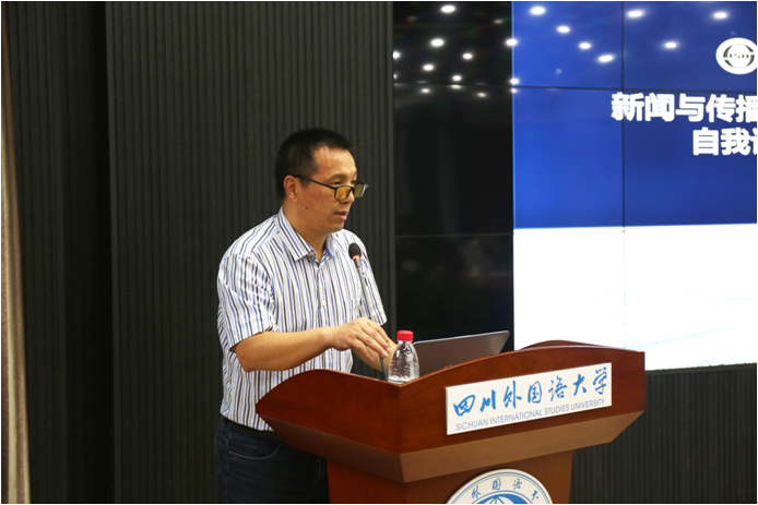 专家评审小组组长石义彬教授做简要致辞后,邀请刘国强教授就新闻与传播硕士点办学情况进行汇报。刘国强教授从新闻与传播学位授权点的定位与目标,人才培养模式,团队队伍,招生、培养与课程设计,制度建设和基础设施建设,以及存在的问题和不足六个方面介绍了学院专业学位硕士点建设成果。