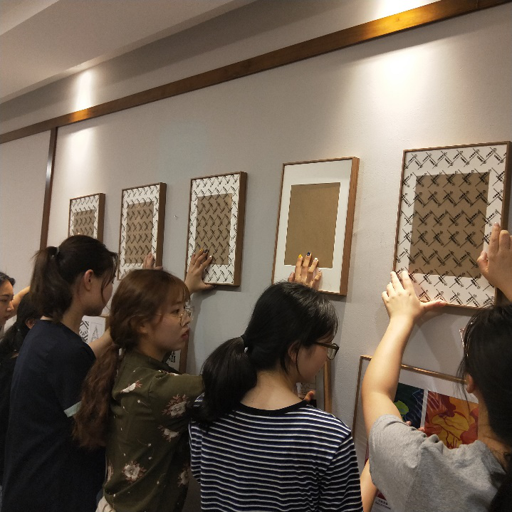 而后,2018级编导班的全体同学都参与到装裱活动之中,同杨巧老师一起开展了正式的装裱活动。年级为优秀的作品提供了精致的木画框,保证每份作品都能够得到最好的保存,同时使大家都有了更为舒适清晰的观感体验。