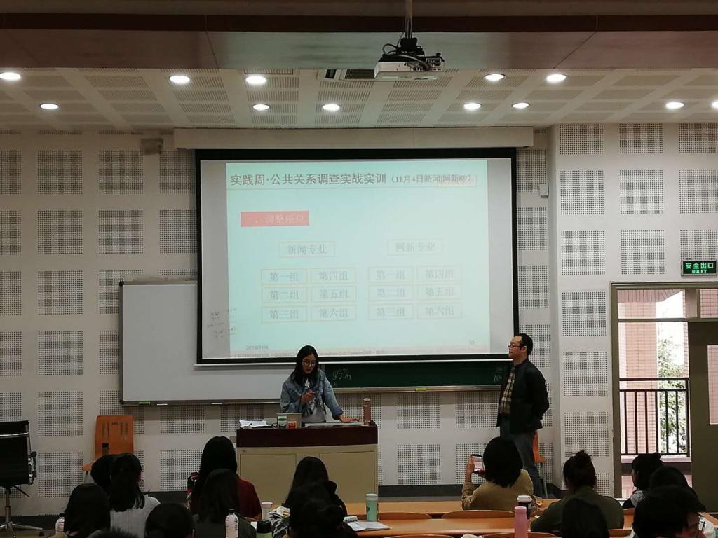 11月4日下午,杨清波老师在西区教学楼C2-1组织了公共关系实战实训活动。本次活动由2018级新闻专业和网络与新媒体专业全体同学参与,并进行了品牌形象诊断调研的策划及成果汇报。