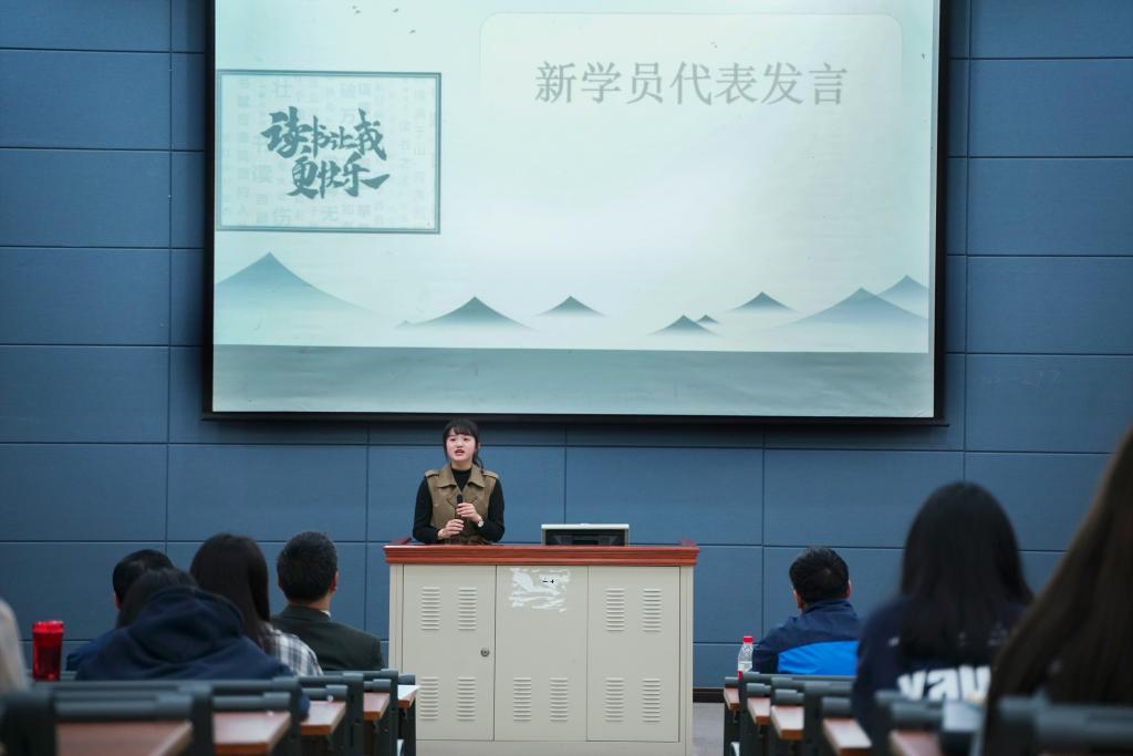 其次,2020级学员代表胡津菲同学在发言中提到,卓越班是一个帮助大家成长的平台,跟着导师们一起广泛阅读,有助于积累知识、增长见识、开阔视野、了解世界,从而获得精神的满足感和人生的沉淀感。