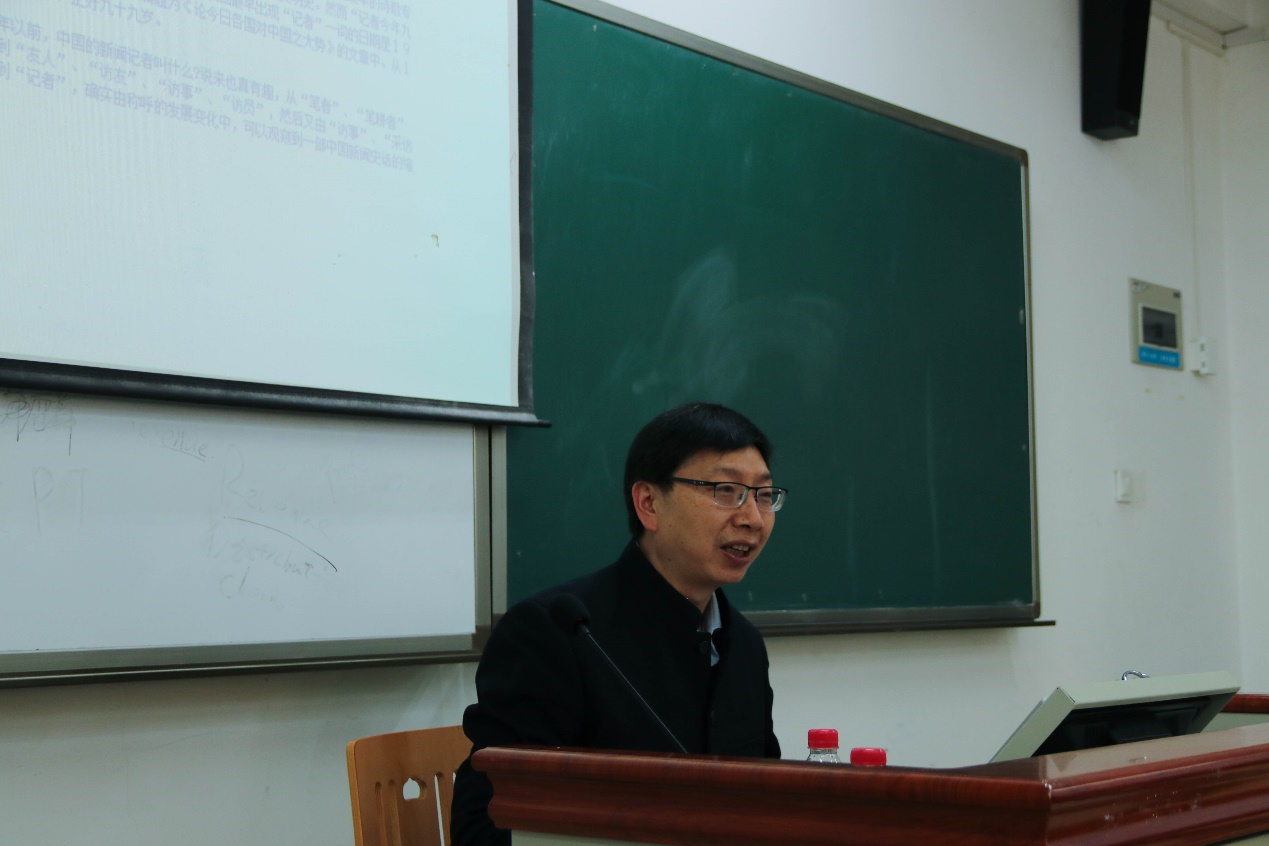 新传通讯社11月13日电(记者/周欣怡  摄影/谭念)2020年1113日星期五下午三点,“跨语际的旅行:‘记者’一词在中国的传播历史”一讲在西区歌乐楼C206教室进行。本次讲坛由中国人民大学新闻学院教授、博导、中国人民大学马克思主义新闻观研究中心主任、中国新闻史学会秘书长邓绍根教授主讲,由hy3380cc海洋之神经理刘国强主持。