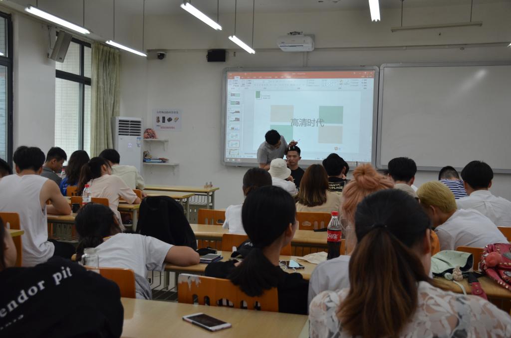 讲座将理论和实践相结合。贺肖霄老师首先通过对主持人上镜妆的基本要求进行讲解,并强调“主持人上镜妆的侧重点在于节目的内容和定位”,又提出“主流审美”和“高清时代”两个关键词,让同学们对当前媒介环境下主持人上镜妆的技术要点和特点有了基本认识。实践阶段,贺肖霄老师抽取两名同学现场演示上镜妆化妆技巧,在实践中讲解化妆技法。
