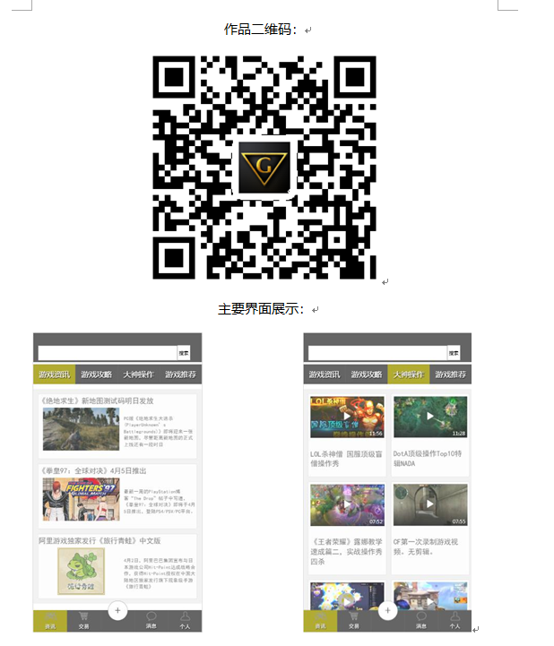 此次项目瞄准了游戏迷群体这一个小众市场,针对他们对各类游戏新闻的需要,为其度身定做了一款汇集众多游戏资讯,并在其他一些方面提供服务的APP——“游乐场”。