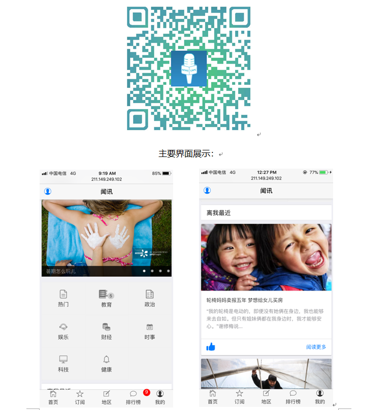 功能介绍:一款用来“听”的新闻app,更加适合一些特定的碎片化的时间。同时也可以自己制作新闻。