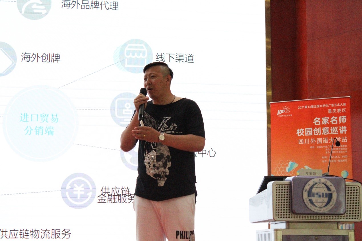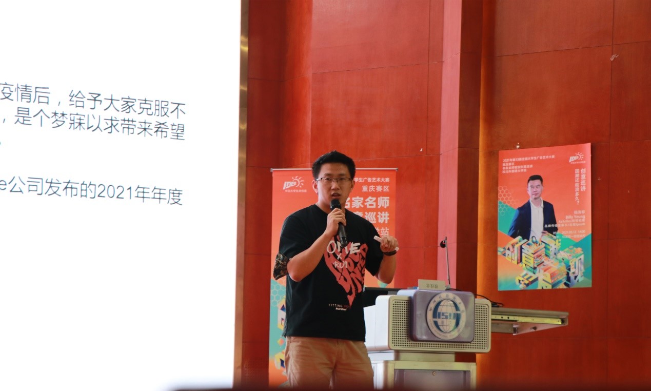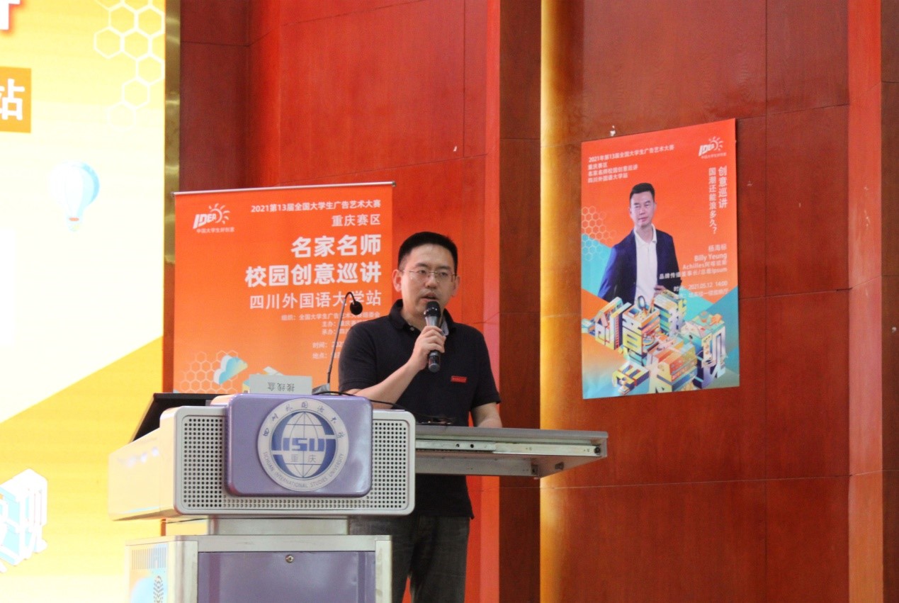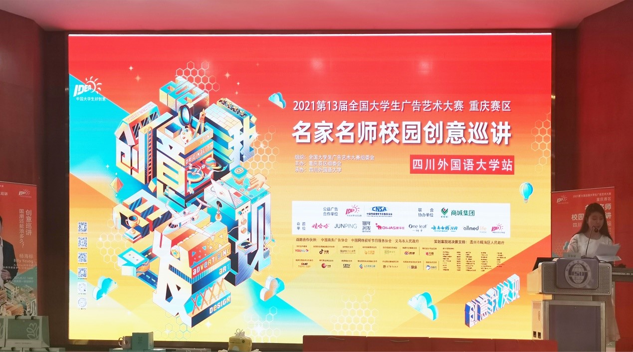 2021年5月12日14:00,第13届大广赛重庆赛区名家名师校园创意巡讲在hy3380cc海洋之神隆重举行。活动由全国老员工广告艺术大赛重庆赛区组委会主办,hy3380cc海洋之神承办。重庆12所高校师生共同参加了本届大广赛的首场线下巡讲活动。