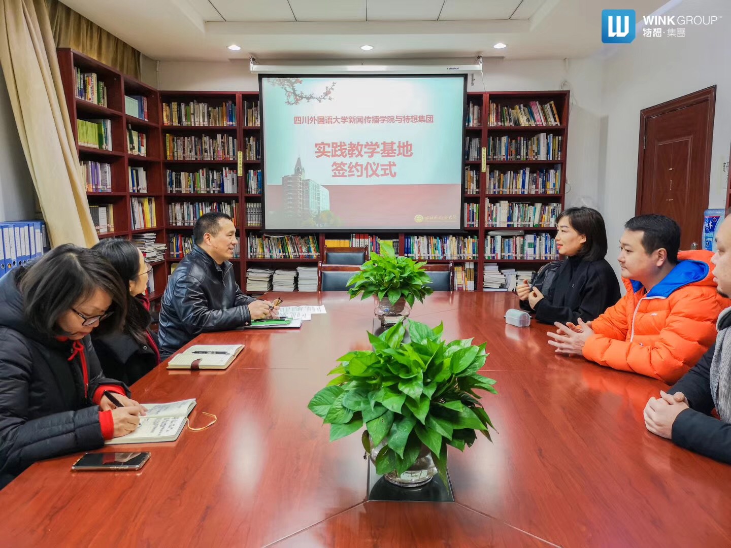 陈丹青副总经理首先介绍了特想集团的概况,包括发展状况与主要业务内容。同时她指出,特想集团与平遥国际影展、连州摄影节和丽水摄影节有合作,特别是与丽水摄影节更是有紧密合作关系,可以为川外新传的同学们提供足够的展示自己的机会。同时陈总也欢迎新传学子来特想实习实践。学院与特想集团还商议到了共建“大实习”的提议,即在本科生大四期间,由学院安排员工进入像特想这样的企业固定实习若干时间。双方还探讨了研究生实习实践的相关话题。刘国强副经理认为研究生实习问题还需上报校研究生院再作决议。