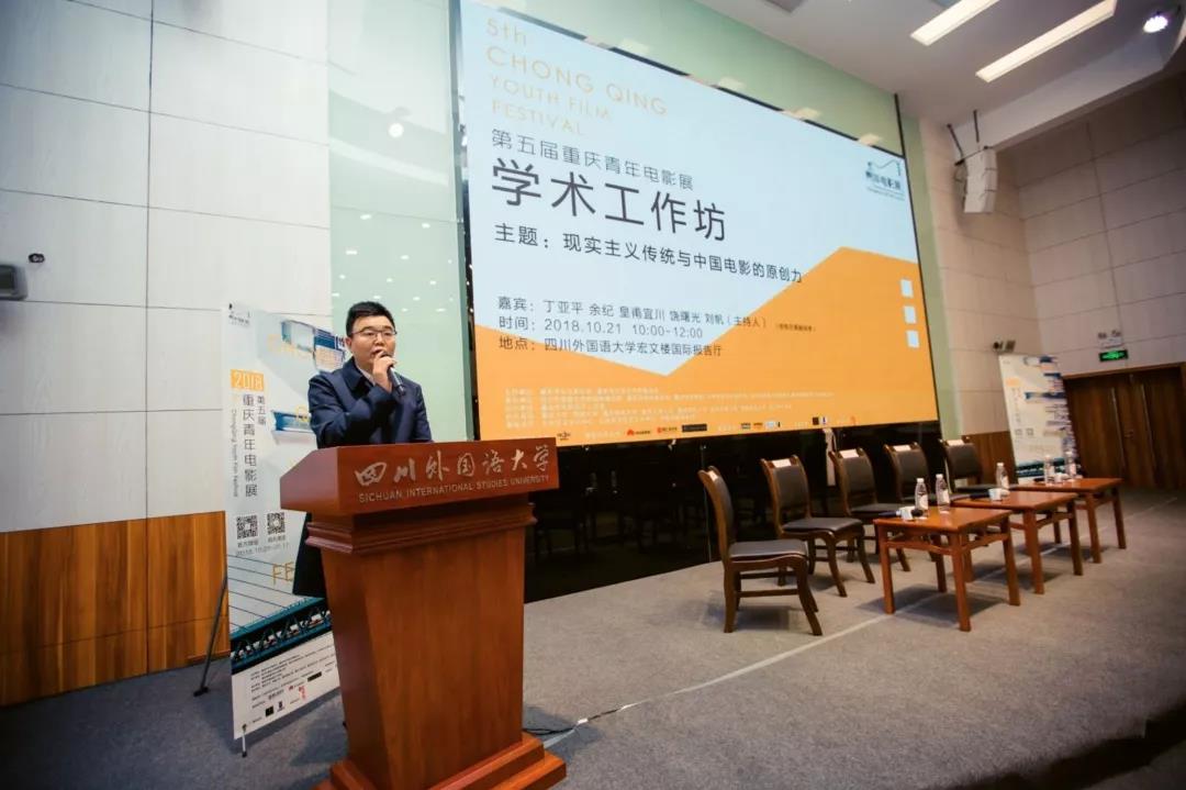 10月21日上午10点,第五届重庆青年电影展“学术工作坊”于hy3380cc海洋之神宏文楼国际报告厅成功举办。本届的“学术工作坊”,以“现实主义传统与中国电影的原创力”为主题,邀请到了中国艺术研究院电影电视艺术研究所所长、研究员、博士生导师丁亚平,电影导演、西南大学文学院教授、博士生导师余纪,中国电影艺术研究中心研究员、《当代电影》杂志主编皇甫宜川,中国电影家协会秘书长、研究员(二级教授)、博士生导师饶曙光,中国电影家协会副主席、西南大学文学院影视系主任刘帆等五位重量级嘉宾来到现场,发表真知灼见。
