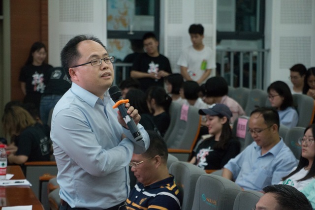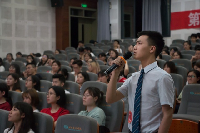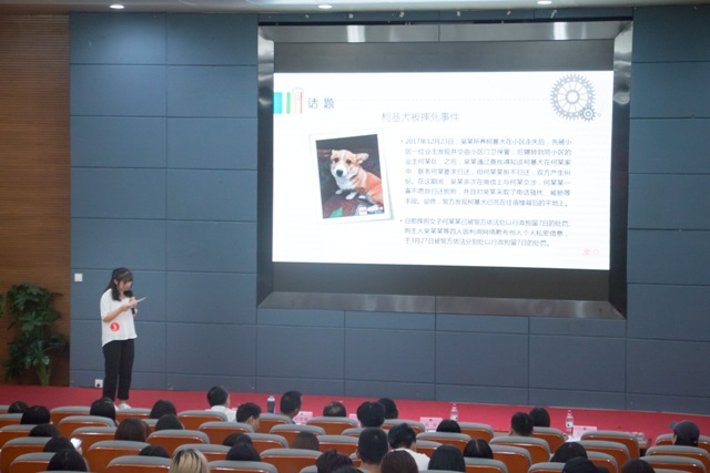 在第一环节中,选手两两一组从六个时事热点话题中抽取一个话题进行两分钟的评述,最后根据个人分数排名晋级前六名。十二位选手都在规定时间内组织语言,进行自身观点的表达。“选手们的评述都存在两个问题,第一是提取新闻中的无效信息,第二是没有集中表达观点,选手应该从材料中找出自身认为有评论价值的观点进行详细阐述”,刘国强经理点评道。皮传荣教授也就该环节选手们的表现,建议大家应该多读好书,丰富知识面,增加思想的深度。