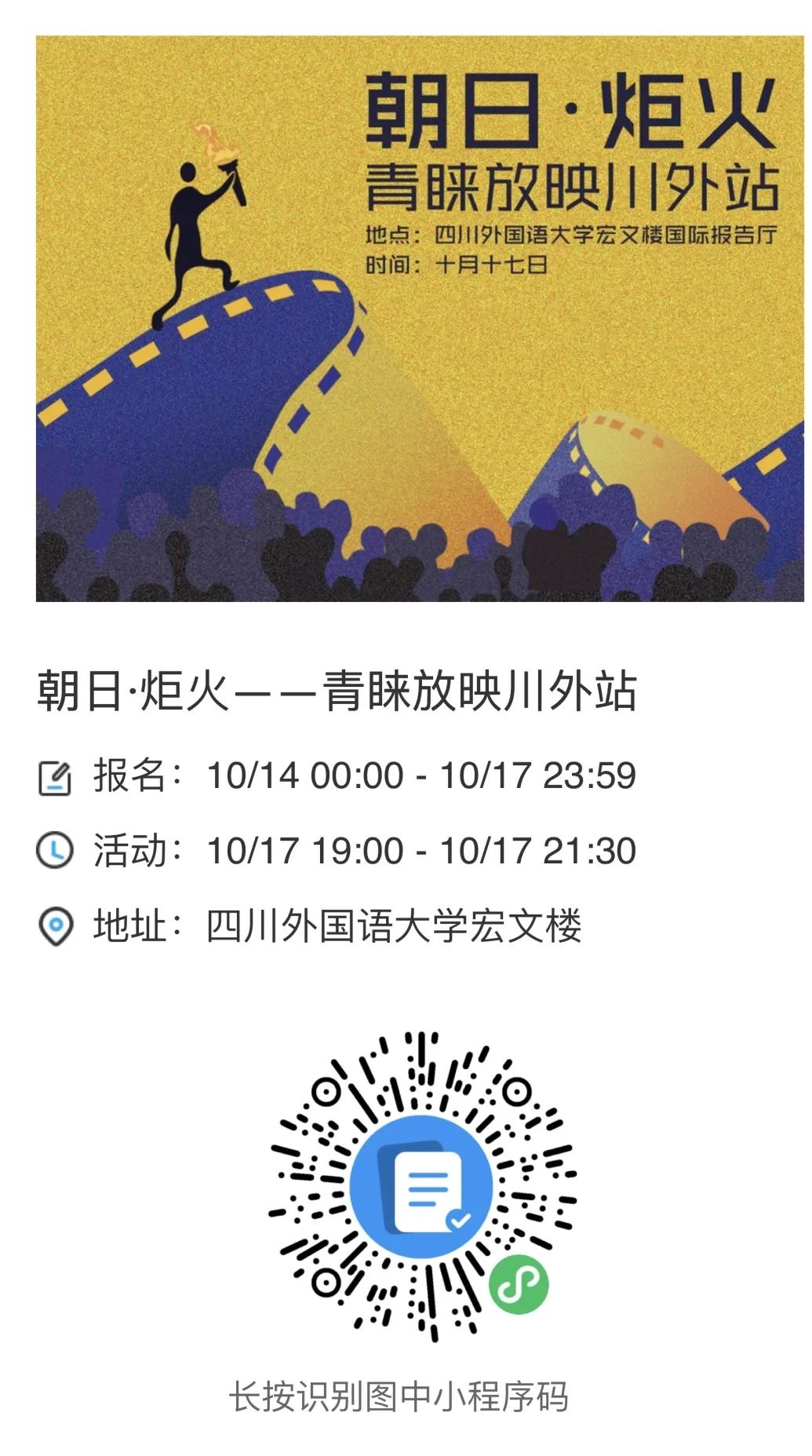 10月17日:重庆青年电影展将在川外举办“青睐放映”