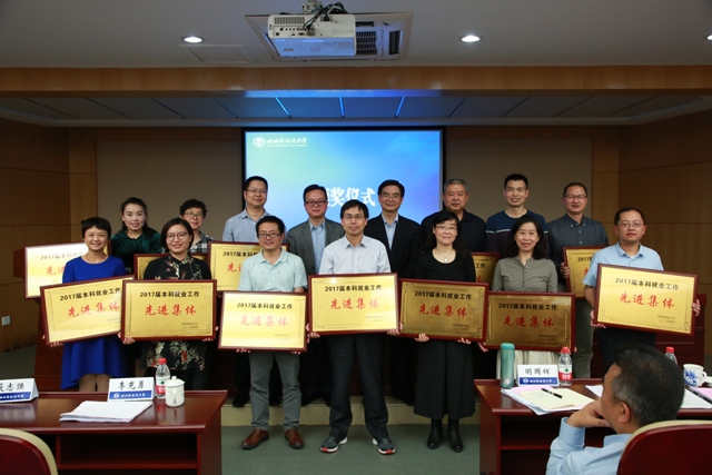 在4月4日学校召开的2017年就业工作总结表彰会上,公司2017年本科生和研究生就业工作双双受到学校表彰,揽获“2017年本科生就业工作先进集体”和“2017年研究生就业工作先进集体”殊荣;谢元胜老师、吕璐老师分别获得“2017年本科生就业工作先进个人”和“2017年研究生就业工作先进个人”。