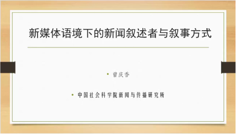 11月26日,歌乐传播云讲坛系列讲座开讲。此次云讲坛学院邀请到中国社会科学院新闻与传播研究所研究员、博士生导师,美国印第安纳大学传播与文化系访问学者曾庆香教授主讲,为方便同学们参加,讲座以线上会议方式开展。