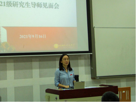 媒介实务中心9月16(记者梁梓晨梁婧仪/文 李若冰 张静宇 周雯婧/图)2021级硕士研究生导师见面会今天上午在歌乐楼B1-1举行。见面会由党总支书记倪颖军主持,经理刘国强教授致辞,副经理郭赫男教授进行入学教育。研究生导师团队及78名研究生参会。