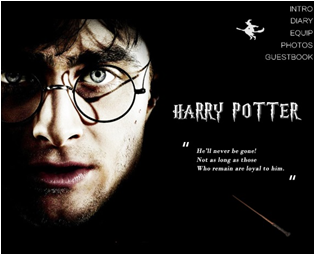 网站介绍:面向《哈利波特》影迷的个人展示型网站,主要分为人物简介、人物经历、人物有关道具、人物相册、留言板六个板块。
